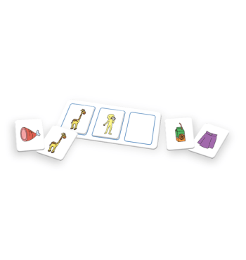 Attirez l'attention de l'enfant sur le pictogramme magnétique en même temps que vous dites le mot et mettez l'emphase sur le son travaillé. Afin d'attirer le regard de l'enfant sur votre bouche, vous pouvez apporter la pièce magnétique près de votre visage.