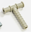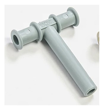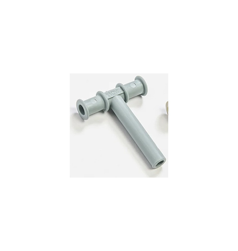Sa forme en T permet une préhension plus facile, avec des crêtes ondulées pour aider à la saisie, en particulier pour les personnes malvoyantes. La longue tige est à mettre dans la bouche.