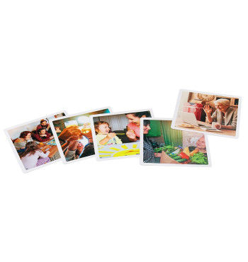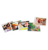 36 cartes photos en couleur (format 12,5 x 12,5 cm) présentant des contextes et des actions d'interaction sociale.