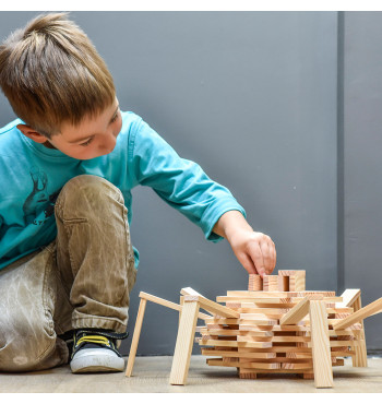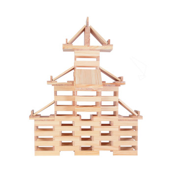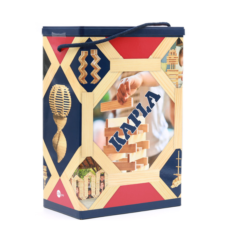KAPLA - Baril 120 pièces couleurs : Nature, rouge, rose, bleu foncé