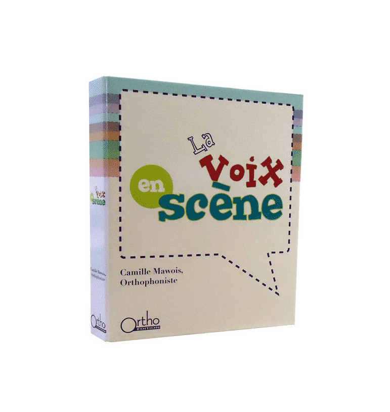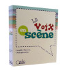 Afin de rendre la rééducation vocale ludique pour des jeunes patients et pour les patients plus âgés, < em> La voix en scène< /em> est composé d'un classeur de 77 cartes amovibles qui répertorient les fondamentaux de la maîtrise vocale : la relaxation, la respiration, la posture, l'intensité et la hauteur. Un dernier domaine, celui de la décentration (exercices de théâtre pur, afin que le patient produise du langage spontané), permet d'observer l'automatisation des autres domaines travaillés en début de séance.