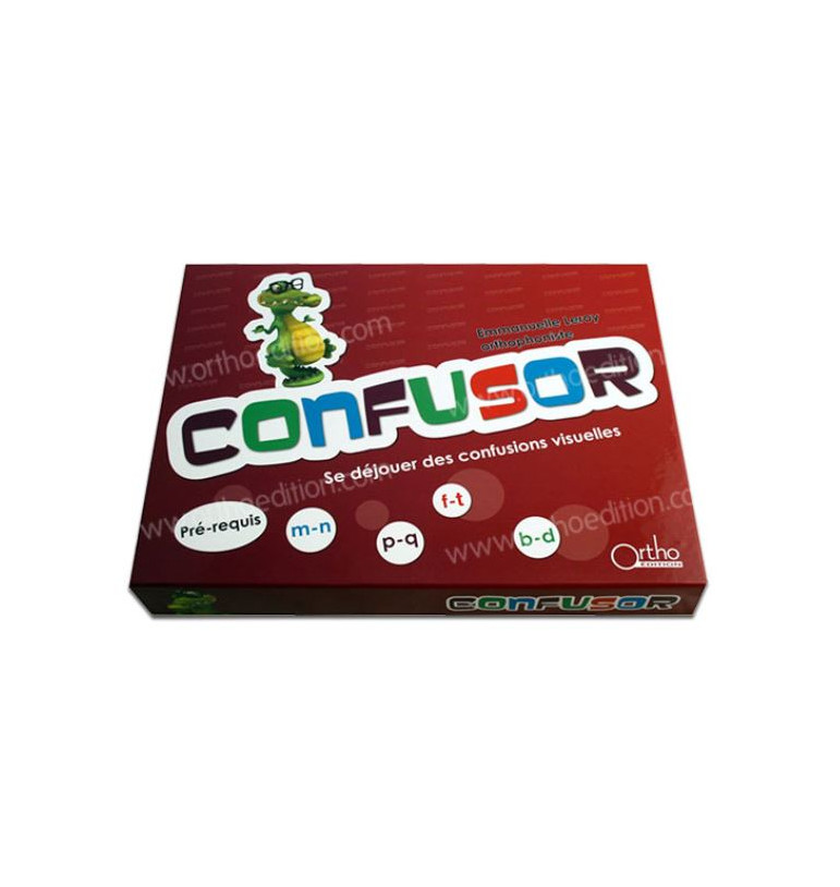 « Confusor » est un matériel destiné aux patients en début d'apprentissage ou à ceux, plus âgés, qui présentent des difficultés dans la reconnaissance des graphèmes b-d, p-q, m-n, f-t.