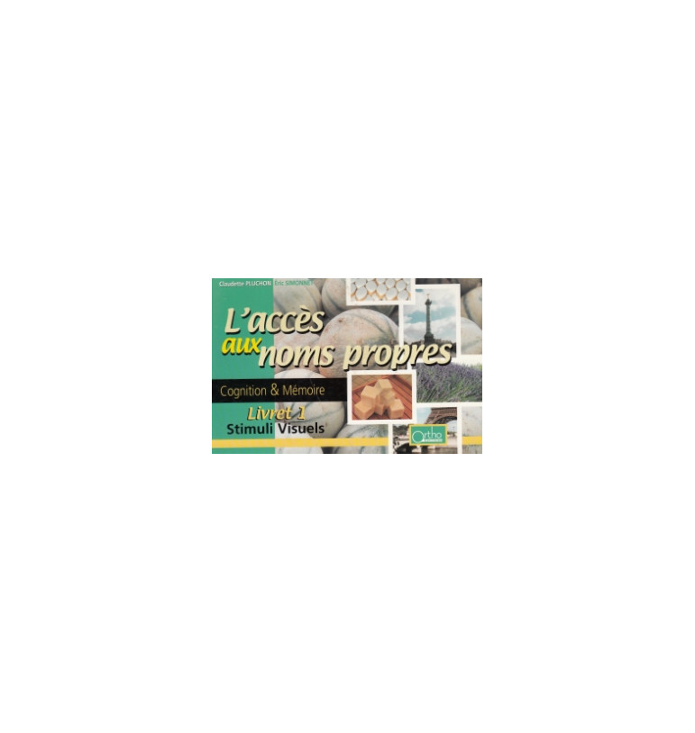 Matériel dédié à la stimulation cognitive. L'accès aux noms propres y est sollicité à partir de stimuli visuels et verbaux.