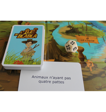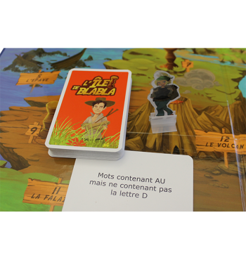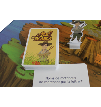 "L'île de Blabla" a pour objectif le travail de l'évocation lexicale rapide à travers différentes modalités : catégorielle, syllabique et orthographique. Afin de complexifier la tâche et de faire appel à des capacités d'inhibition et de flexibilité mentale, des critères d'exclusion sémantique ou alphabétique sont combinés aux contraintes d'évocation.