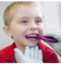 Le design en forme de P comporte une boucle qui le rend facile à tenir, et une longue extension qui le rend facile à atteindre les molaires arrière. Il est disponible dans diverses versions (souple, médium ou dur) et couleurs.